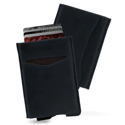✓ THE MODERN CLASSIC | Introducing ALPHA Leather, a beautifully crafted stylish leather jacket, meets our best selling minimalist card holder. Designed for comfort, strength and protection, with beautiful leather colourways, quick access ejector system and drop-safe card grips. With ALPHA Leather you can now carry additional notes and cards whilst still maintaining the slimmest of profiles in your pocket. ✓ STORE BOTH CARDS & CASH | Insert up to 5 embossed bank / credit cards into the card holder, which are typically thicker, or 8 flat cards and eject them all with ease using our stack & slide ejector wallet system. Prefer to keep more cash or cards on you, then add 2 more cards or some cash in the rear pocket and remove them with ease with our deep pocket design and smooth leather, which has been hand selected for the best combination of durability and touch. ✓ A PERFECT GIFT | The AKIELO Wallet will arrive beautifully presented in our luxury matte black gift box. A gift for every occasion and perfect for those gents looking for a beautifully crafted mens wallet. All three colourways are beautifully stamped with the AKIELO hallmark reflecting the utmost style and workmanship. ✓ PROTECT YOUR PRIVACY | Contactless cards are now the norm and thieves are taking advantage of this, using card-reading apps and simple devices to clone cards and take your funds. The ALPHA Wallet guarantees contactless card protection. With our secure credit card holders, it's impossible for anyone to access your data. ✓ REPLACE THE OLD WITH THE NEW | The ALPHA Wallet is perfect for those looking for a lightweight and slim metal wallet or RFID card protector. With a similar thickness to that of an iPhone, it is a great alternative to conventional, bulky, leather wallets for men and protects your most important cards from bending and breaking.