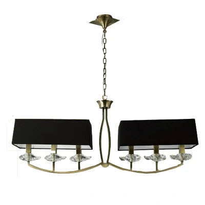 Akira Pendant 2 Arm 6 Light E14, Antique Brass Black Shades