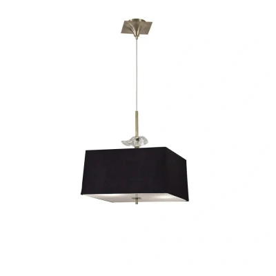 Akira Square Pendant 4 Light E27, Antique Brass With Black Shade