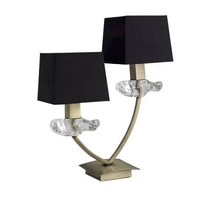 Akira Table Lamp 2 Light E14, Antique Brass With Black Shades