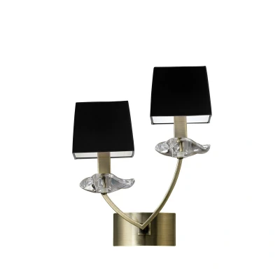 Akira Wall Lamp Switched 2 Light E14, Antique Brass Black Shades