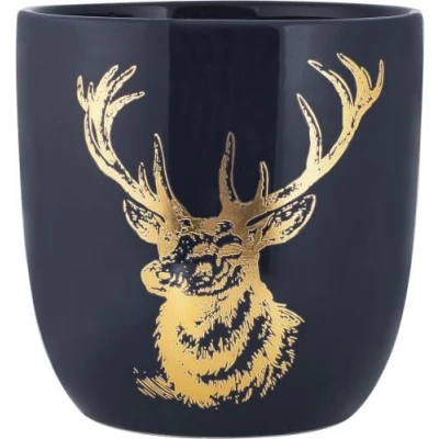 AKKIN Ceramic Planter With Stag 10.5cm Blue/Gold Christmas Festive Decoration Sweet Holder Candle Indoor Plant Pot