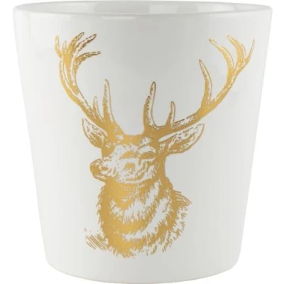 AKKIN Ceramic Planter With Stag 14.5cm White & Gold Christmas Festive Decoration Sweet Holder Candle Indoor Plant Pot