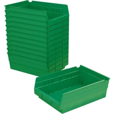 Akro Mils 30150 Plastic Shelf Bins, Heavy Duty Storage Bins for Garage, Closet, and Drawer Organization, 30.48 cm x 16.51 10.16 cm, Green, 12 Pack