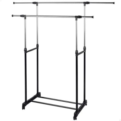 Practical and modern: its two hanging rods have matte black sides and silver finishes, this donkey brings an elegant touch to any space Expanded utilities: its top bars extend from 80 to 150 cm and the height is regulated between 92 and 160 cm, adapting to all types of garments, from shirts to long coats Easy mobility: it has four wheels, two of them with brakes, which facilitate movement and ensure stability once placed in the desired place STURDY AND STABLE - The double structure of the donkey combines high-quality steel and plastic, offering firmness, durability and ideal load-bearing capacity for daily use Easy to assemble: thanks to its tubular fitting system, the donkey can be easily assembled without tools or previous experience, in just a few minutes