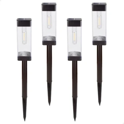 AKTIVE Set of 4 LED Solar Beacons, 6 Lumens, Outdoor Lighting for Garden and Paths, Warm Light, with Stake, Charging, On/Off Button, IP44, Autonomy 8h, Installation Without Cables (61575)