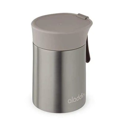 Aladdin Enjoy Thermavac Stainless Steel Food Jar 0.4L Keeps Hot or Cold for 5.5 Hours Double Wall Vacuum Insulation Lunch Box Leakproof Silicone Strap BPA Free