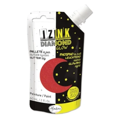 Aladine Izink Diamond Glow Glitter Paint by Day, in The Dark at Night Ultra Coverage, Any Surface DIY and Creative Hobbies Soft Bottle 60 ml Red 82099