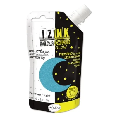 Aladine Izink Diamond Glow Glitter Paint on Day, in The Dark at Night Ultra Coverage, Any Surface DIY and Creative Hobbies Soft Bottle 60 ml Sky Blue, 82100