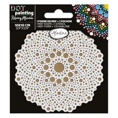 Aladine Mandala Kit 10 cm in Dot Painting Mandalas Set with Stencil & Wooden Stand 85498
