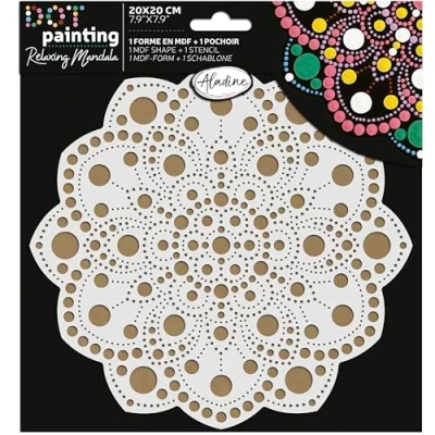 Aladine Mandala Kit 20 cm in Dot Painting Mandalas Set with Stencil & Wooden Stand 85502