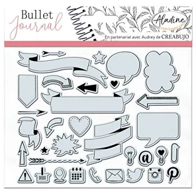 Fun and creative daily stamps: precisely stamp your notebooks and other diary to better organise yourself, with the themes of your choice (recipes, hobbies, holidays, etc.). A PARTNERING COLLECTION WITH AUDREY DE CREABUJO - This collection of Stampo Bullet Clear stamps was made in partnership with Audrey de CREABUJO. Audrey shares with Aladine a passion for bullet journaling, creation and organization. The collection is up to you to customise your bullet journal, structure your everyday life, follow your goals and make your dreams come true FULL RANGE - Hundreds of different stamps for every moment and situation. Discover Bullet Clear Banners & Icons, Cats, Kitchen, Holidays, Fruits, Unicorns, Seasons, or Month and Week Organization Stampo to arrange your schedules. The Stampo Trackers help you monitor your daily savings, water consumption, or even sleep, or see how your height and weight changes! ALADINE QUALITY: 15 to 35 clear stamps. The silicone footprint is cut around the design for drawing without unsightly border marks. For use with clear acrylic backing. Ideal for bullet journal or creative carding. DIY FUN WITH ALADINE - Do It Yourself finally accessible to everyone! Personalize your accessories and objects with paint, stencils, stampo... Create cards, announcements, make your own notebooks and bring colour and personal touch to your everyday items. Passionate about arts and crafts, Aladine is here to bring creativity, spontaneity and simplicity to all your creative desires.