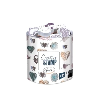 NOMADIC STAMP KIT: Stamp everything, everywhere, all the time with this Aladine Stampo Scrap kit. The finesse and originality of their design allow you to bring personality and creativity to your invitations, diaries, cards, notebooks, bullet journal... Small format, they easily fit into your bag and follow you on a trip or in the park to illustrate your ideas. ALADINE QUALITY AND DESIGN: Aladine pads are made of EVA foam and highly resistant rubber. The precise cutting of the rubber around the design does not leave any unsightly marks on the edges for an impeccable finish. All the patterns in this kit quickly combine to create a harmonious design and a stunning look. Fine and very detailed, all the drawings of our stamps are original and made in France by the illustrators of the Aladine workshop. WATER WASHABLE PADS: Apply one or more colours of ink and then print the pattern on the chosen paper support: paper, card, cardboard. The black ink included in this box is an Izink Pigment Embossable Ink Pigment. After use, we advise you to wash your tampons under water and with soap (a little dishwashing liquid) without delay to find a perfectly clean tampon. IZINK INKER INCLUDED: The kit is ready to use with its inker included, it is also the ideal that will please all those who like to write and customize their invitations and correspondence. Kit composition: cylindrical box filled with 35 "Heart" stamps of various sizes and a black Izink Pigment ink - embossable ink with slow drying. This kit is also available in 15 other themes and in three versions of coloured ink boxes (Stampo Izink) THE PLEASURE OF DOING YOURSELF WITH ALADINE: Do It Yourself finally accessible to all. Personalize your accessories and objects with paint, stencils, Stampo... Create cards, invitations, make your own notebooks and bring colour and personal touch to your everyday objects. Passionate about creative leisure activities, Aladine is here to bring creativity, spontaneity and simplicity to all your creative desires., Manufacturer: Aladine