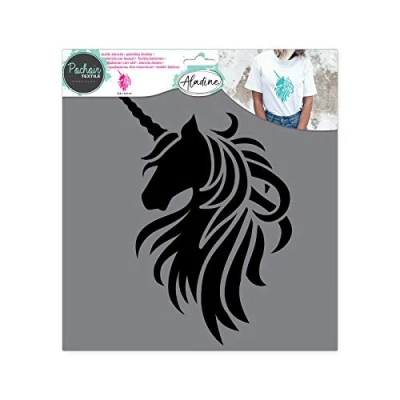 Aladine Unicorn Textile Stencil Decoration on Fabric To Customize Canvas, T shirts, Tote Bags Washable 28 x cm Large Graphic Design