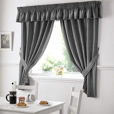 Alan Symonds Gingham Kitchen Curtains Black 46 x 54, 46'' 54''