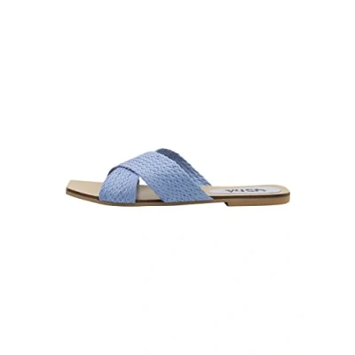 Trendy sandal Braided straps Comfortable, flat footbed Delicate pastel tones Faux leather strap