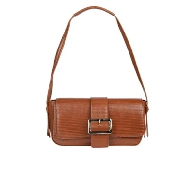 Reptile embossed shoulder bag Made of high quality material Large buckle on the flap Flap with magnetic closure Textile inner lining