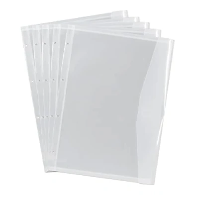 DIN A4 format With 4 holes Set of 5 sleeves With flap on right-hand side Punched holes: 8/8/8 cm