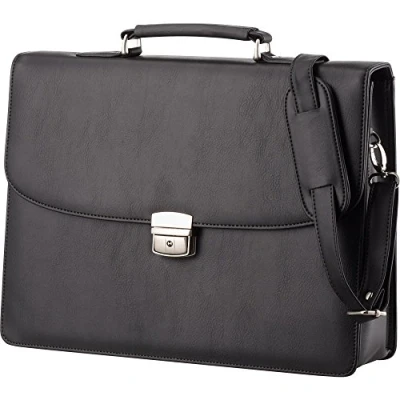 High-quality Anzio briefcase from Alassio Made from durable, durable black faux leather with a classy look. Exterior: sturdy carrying handle, removable and length-adjustable shoulder strap with padding and silver matte carabiner hook and silver matte lock with key Interior: Zipped front compartment, large main compartment, business card pocket and 2 pen loops Outer dimensions: approx. 28.5 x 38 x 10 cm, inner dimensions: approx. 27 x 37 x 9.5 cm, volume approx. 9.5 litres