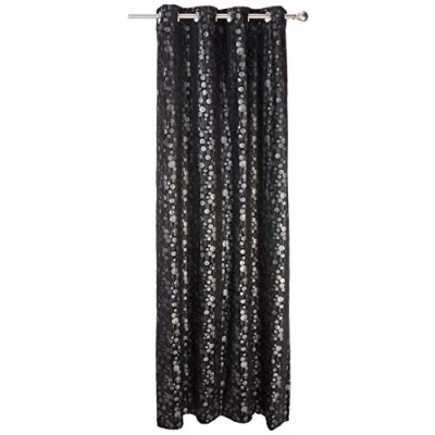 Dimensions: 245 cm x 135 cm (height x width). Material: opaque decorative curtain, eyelets Design: like small silver platelets, the dots on the black back look particularly on white walls, the colour is distinguished by the light shimmer Function/Assembly: The inner diameter of the metal eyelets is 4 cm. The 8 eyelets give an optimal fold design so you can move the scarf as often as you like, and the wrinkles always stay in shape. Care instructions: please wash the scarves at 30 °C on a gentle cycle without optical brighteners. Do not tumble dry