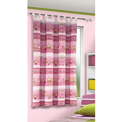 Dimensions: 160 cm x 135 cm (height x width) Material: high-quality cotton/polyester blend, opaque, loops Design: Who does not want to be the castle lady. The cute decorative scarf in the colour combination pink-rose with many figures to search and discover will be an eye-catcher in your girl's room. Pink and pink the favourite colour of the girls Function/installation: the 8 loops can be easily and easily decorated on your curtain rod Care instructions: please wash the scarves at 30 °C on a gentle cycle without optical brightener. Not suitable for tumble drying