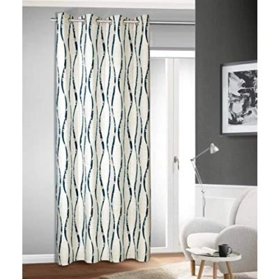 Dimensions: 245 cm x 135 cm (height x width) Material: high-quality, opaque eyelet curtain Design: "Naturlook", an absolute trend theme, distinguishes this elegant and high-quality eyelet curtain. The dark blue wave lines emphasise the elegant touch of the eyelet curtain Function/assembly: the inner diameter of the metal eyelets is 4 cm. The 8 eyelets create an optimal drape so you can move the scarf as often as you like and the wrinkles always stay in shape Care instructions: please wash the scarves at 30 °C on a gentle cycle without optical brightener. Not suitable for tumble drying