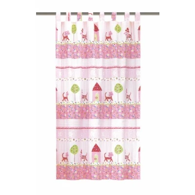 Dimensions: 175 cm x 135 cm (height x width) Material: high-quality cotton/polyester blend, opaque, loops Design: your favourite pets are captured on this modern, pink children's decoration, modern touch and suitable for any girl's room Function/installation: the 8 loops can be easily and easily decorated on your curtain rod Care instructions: please wash the scarves at 30 °C on a gentle cycle without optical brightener. Not suitable for tumble drying