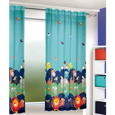 Dimensions: 175 cm x 140 cm (height x width). Material: transparent and airy, concealed loops Design: giraffe, elephant and co...many animals from the zoo can be found on this airy and transparent scarf. Show your children the colourful world of animals Function/installation: the 8 loops can be easily and easily decorated on your curtain rod. Care instructions: please wash the scarves at 30 °C on a gentle cycle without optical brighteners. Do not tumble dry