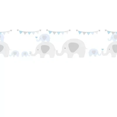 A charming border featuring a family of elephants. Shown here in the grey colourway. Self adhesive border - please request sample for true colour and texture. Pattern repeat is 62.5cm.
