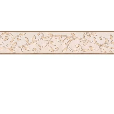 A traditional stylised leaf trailing design on a faux plaster effect textured background with a distressed colouring. Shown in shades of brown. Blown vinyl - paste the paper border - please request sample for true colour and texture. Pattern repeats every 65 cm.