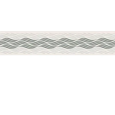 A sophisticated rippled wave border with a textured feel. Shown in the silver colourway. Self adhesive border - please request sample for true colour and texture. Pattern repeat is 10.5 cm.