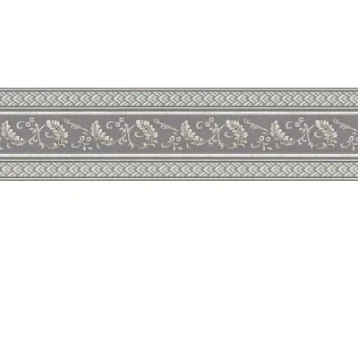 A classic ornate textured decorative style border with several rows of pattern with a central leaf trailing design in silver grey. This is a paste the paper border.