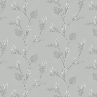 WallpaperDirectA fresh and delicate design which features beautiful trailing leaves and grasses with a subtle textured effect. Seen here in the Grey colourway.