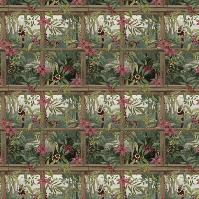 Transform your living space with the enchanting Holden Decor Comoro Tropical Light Wood Wallpaper (SKU 91392), a beautifully detailed wallcovering that brings the serene beauty of a tropical paradise into your home. Featuring a light, natural wood trellis motif that creates the illusion of rustic framing, this premium wallpaper seamlessly blends structural warmth with lush botanical artistry. Intricate vines, blossoming flowers, and curious creatures such as lemurs peek playfully through the foliage, adding depth, whimsy, and visual intrigue to every wall. The calming palette of soft greens, gentle pinks, and earthy browns evokes a sense of tranquillity, making this design perfect for living rooms, bedrooms, study spaces, or feature walls where you want to make a statement without overwhelming the senses. Crafted with meticulous attention to detail and printed on high-quality paper, this wallpaper not only captivates with its design but also delivers durability and ease of