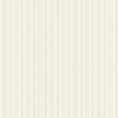 Intricate trailing damask designs add elegance to this striped wallpaper.