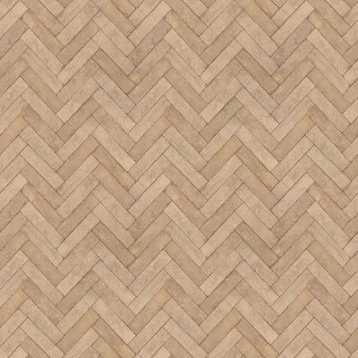 WallpaperDirectA parquet effect or herringbone pattern brick design, with a distressed effect to the tile edges. Shown in the Sand soft brown colourway.