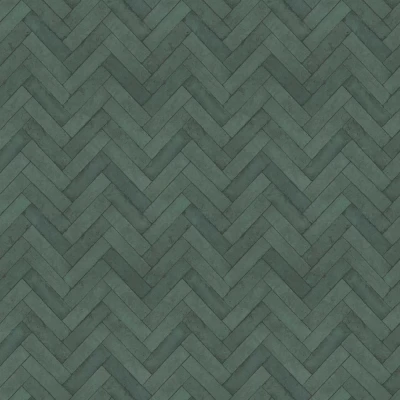 WallpaperDirectA parquet effect or herringbone pattern brick design, with a distressed effect to the tile edges. Shown in the Green colourway.