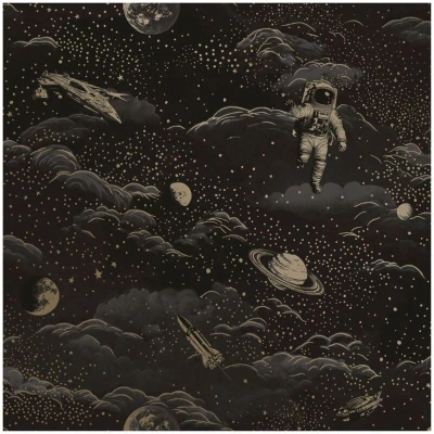 General description This captivating wallpaper transports you on an incredible journey through the cosmos, transforming any room into a vast and mysterious universe waiting to be explored. The immersive design features a lone astronaut gracefully floating amidst a myriad of twinkling stars, inviting a sense of wonder and adventure. Surrounding this intrepid explorer are intricately detailed celestial bodies, including ringed planets reminiscent of Saturn, luminous moons, and distant Earth-like spheres, all rendered with a striking illustrative quality. Various spacecraft, from sleek rockets to futuristic vessels, traverse the inky depths of space, adding to the dynamic narrative of galactic exploration. Technical specifications Roll Size: 10.05m x 53cm Approx. Coverage: 5.25msq (56 sq.ft) Pattern Repeat: 53/26.5cm Offset match Colour: Black, Gold SKU: 14050 Installation Application Method: Paste The Paper Washable for easy maintenance Wet Removable for hassle-free removal when