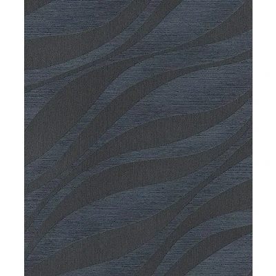 WallpaperDirectMetallic ink and textural emboss create a large scale elegant wave design, moving across the wall. Shown in the Midnight blue colourway.