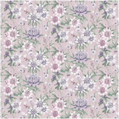 General description This exquisite wallpaper features a beautiful and elegant botanical design that brings a sense of soft, natural charm to any room. The pattern is a detailed and repeating motif of intricate flowers with delicate petals, accompanied by clusters of berries and gracefully winding vines. The illustration has a hand-drawn feel, with a subtle vintage quality that adds to its sophisticated appeal and timeless nature. The level of detail in the blooms and the flowing lines of the vines creates a captivating and serene visual texture. The color palette is a serene and romantic mix of blush pink and lavender tones, perfect for creating a relaxing atmosphere in a bedroom, a cozy living area, or a nursery. Technical specifications Roll Size: 10.05m x 53cm Coverage: 5.25msq (56 sq.ft) Pattern Repeat: 26.5cm Match: Offset Colour: Pink SKU: 91322 Installation Designed for a simple and clean installation process using the paste the wall method. The adhesive is applied directly to
