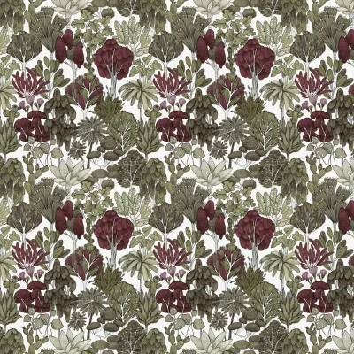 Halcyon - A bright, tropical tree-scape fills your walls with a vibrant style. Featuring a linear art style with bold colours and fantastic detail. Seen here in the Green colourway.