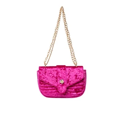 Velvet evening bag With decorative flower on the flap With magnetic closure Gold Link Chain Textile interior