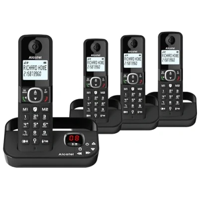 ALCATEL F860 Voice TAM ATL1427554 Cordless Phone Quad Handsets, Black, Black