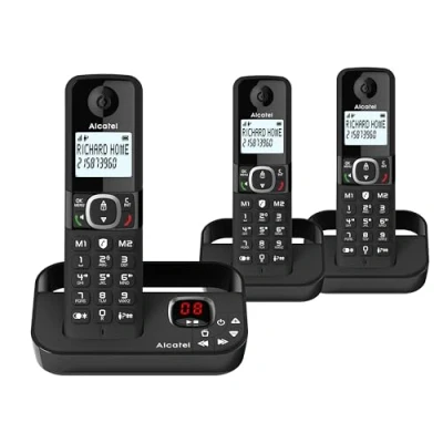 Alcatel F860 Voice Trio Cordless Phone with answering machine and 3 Handsets Landline Home Phones Call Blocking Telephones