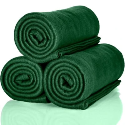 ALCLEAR 3 piece Oeko Tex fleece blankets, color: fir green, great size 130x160 cm, over 200 g/m², sofa blanket, couch cozy picnic throw