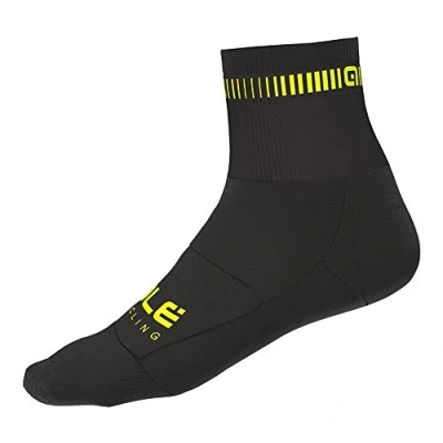 Alé Cycling Unisex Logo Q Skin 12cm Socks, Black/Fluo Yellow, Large (EU 44 47)
