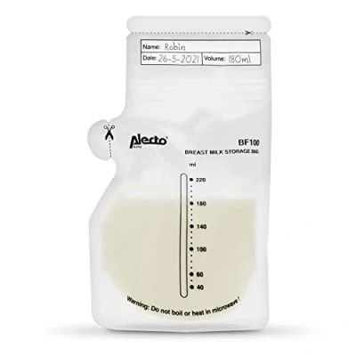 Breast Milk Storage Bags: The Alecto BF100 storage bags are BPA free and equipped with a double closure. The 100 bags are pre-sterilised and ideal for storing breast milk Capacity: the capacity is 220 ml per bag Easy to use: thanks to the separate opening, the contents can be easily poured out Clear: The bags are equipped with a writeable surface so that data and content can be recorded Quality: the material used is naturally BPA-free and frost-proof