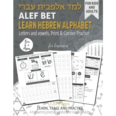 Alef Bet Learn Hebrew Alphabet Letters: to read and write the letters of Jewish alphabet, A handwriting practice workbook for kids adults, Cursive Print type beginners
