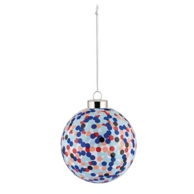 Christmas tree ball consisting of a sphere produced by mouth-blowing glass inside a mould Designer: Alessandro Mendini Material: glass Size: diameter 9 cm The iconic 'Proust' decoration was born from the reinterpretation of a detail from a painting by Paul Signac, to make each decoration a small work of art