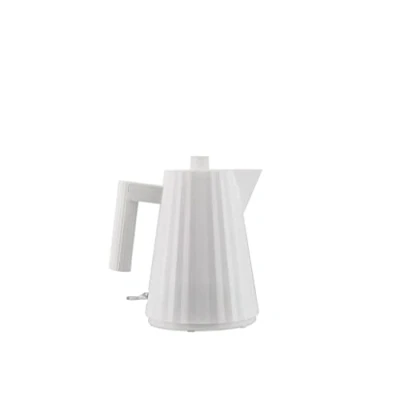 Decidedly plastic in form, this kettle has been designed by Michele De Lucchi. The product's very name—Plissé—declares its sculptural nature: like a fabric transformed into a three-dimensional shape by a thick pleating, this kettle is reminiscent of an haute couture dress, a beautiful object sculpted by a fashion designer.CHARACTERISTICS / SUGGESTED USE- Made of thermoplastic resin. To open the kettle, use the knob on the lid. Under the kettle's handle, there's a lever switch for turning the kettle on and off. - The power supply base is hidden: at the bottom of the kettle, there's a small opening used to pull the cable out.- A light on the lever switch indicates when the kettle is active. Once the boiling point is reached, the kettle switches off automatically and the switch returns to its original position. To switch off the kettle before water starts boiling, simply lift it from the power supply base.- A filter hidden inside the spout prevents limescale particles from finding their way into your drink. The filter can be removed, rinsed under running water and placed back in the spout.- A MAX symbol on the inside of the kettle indicates the maximum level of water that the kettle is capable of holding.- A safety device cuts off the power supply if there's too little or no water in the kettle, allowing you to avoid possible damage.- The handle allows for a firm, comfortable grip, while the shape of the spout facilitates pouring.- The base of the kettle is thermally insulated, which means that once water has reached the boiling point, the kettle can be placed safely on any surface.- To clean the inside of the kettle, we recommend using a mixture of water and vinegar. For the exterior and the power supply base, use a damp cloth and a mild detergent.*****About "Alessi"“Truly masterful design must move people, convey emotions, bring back memories, surprise, and go against the common way of thinking.” - Alberto AlessiEver since its establishment in 1921, Alessi has been evolving gradually. It's now the leading figure in the field of Italian design, known and appreciated for its skilful mediation between intriguing expressions of creativity and the needs of the public. Alessi seeks to translate bold creative impulses into real-life objects capable of fulfilling dreams and satisfying desires.